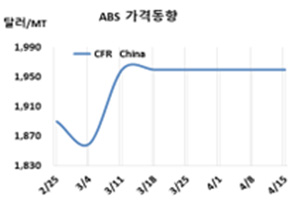 표, 그래프: <ABS 가격동향> <화학저널 2022/04/20> |