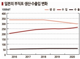 일본, 생산량 30만톤 이하로 감소 … 해외생산 확대에 고부가화