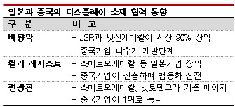 디스플레이 소재는 중국이 LCD(Liquid Crystal Display) 시장을 장악함에 따라 중국기업과의 연계가 강화되고 있다. 표, 그래프: <일본과 중국의 디스플레이 소재 협력 동향> <화학저널 2022년 5월 2일> |