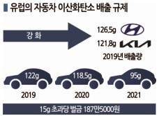 2019년 기준으로 현대자동차의 신규 자동차 이산화탄소 배출량이 126.5g, 기아자동차는 121.8g으로 2021년 기준을 크게 초과하고 있다.