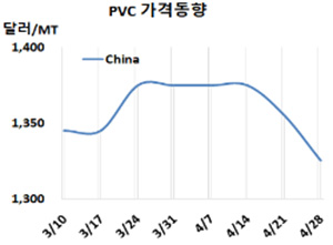 CFR China 1325달러로 30달러 떨어져 … 에틸렌에 EDC·VCM 약세