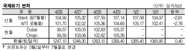 5월3일 국제유가는 중국의 수요 감소 우려 영향으로 폭락했다.