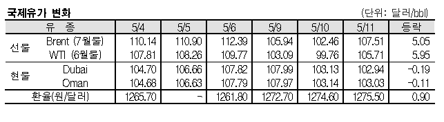 브렌트유, 107.51달러로 5.05달러 올라 … 두바이유는 102.94달러로