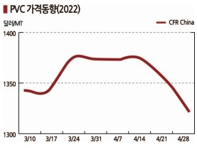그러나 중국이 아세틸렌(Acetylene) 공법 PVC를 중심으로 2700만톤에 달하는 생산능력을 확보하고 있는 가운데 코로나19(신종 코로나바이러스 감염증) 변이 오미크론 확산을 막기 위해 상하이(Shanghai)에 이어 베이징(Beijing)까지 봉쇄함으로써 중국 수요 부진이 표면화되고 있다.