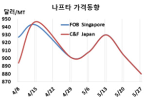 표, 그래프: <Naphtha 가격동향> <화학저널 2022/05/30> |