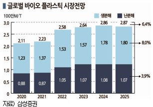 글로벌 생분해성 플래스틱 시장은 2025년 9조7000억원으로 확대될 것으로 예상된다.