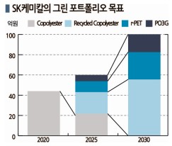 SK그룹에서는 SK케미칼이 그린케미칼 사업 포트폴리오를 재편하면서 바이오 베이스 소재 중심으로 전환하고 있으며 2030년 플래스틱을 그린 포트폴리오로 100% 전환할 방침이다.