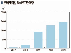 롯데케미칼은 2011년 국내 최초로 바이오 PET를 생산했고 2021년 3월에는 국내 최초로 환경성적표지 인증을 획득했다.