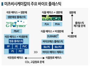 미츠비시케미칼(MCC: Mitsubishi Chemical)은 사회문제에 대한 대응방안을 늘리기 위해 다양한 바이오매스 플래스틱을 개발하고 용도를 개척하는 전략을 추진하고 있다. 최근에는 에폭시수지(Epoxy Resin) 바이오화, 유기자원 리사이클 시스템 구축 등 사회적 니즈를 충족하기 위한 대책에 주력하고 있다.