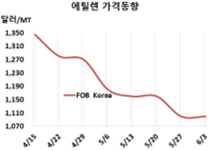 표, 그래프: <Ethylene 가격동향> <화학저널 2022/06/07> |