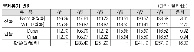 브렌트유, 123.58달러로 3.01달러 폭등 … 두바이유는 116.52달러