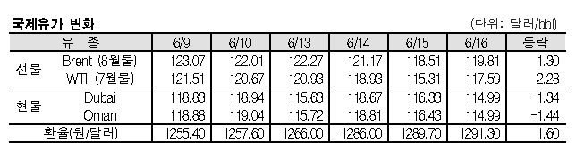 6월16일 국제유가는 미국의 이란 추가 제제 영향으로 상승했다.