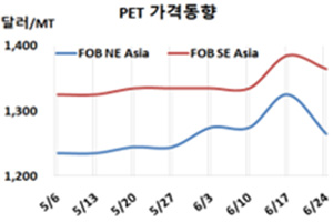 FOB NE Asia 1265달러로 60달러 떨어져 … 원료가격도 하락현상