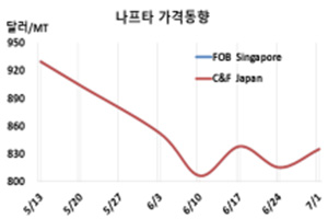 표, 그래프: <Naphtha 가격동향> <화학저널 2022/07/04> |