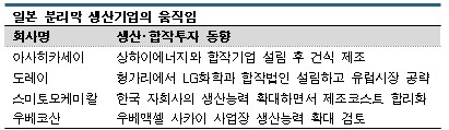 LG화학은 2015년 수익성을 문제로 분리막 사업에서 철수했지만 배터리 소재 시장의 성장성이 확대됨에 따라 2021년 일본 도레이와 헝가리에 합작법인을 설립하기 위한 계약을 체결했다.
