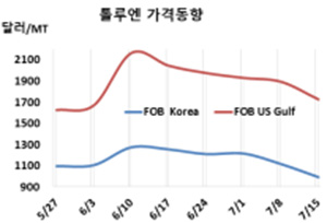표, 그래프: <톨루엔 가격동향> <화학저널 2022/07/20> |
