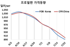 표, 그래프: <Propylene 가격동향> <화학저널 2022/07/26> |