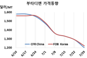 부타디엔(Butadiene)은 1200달러 붕괴가 가시화되고 있다.