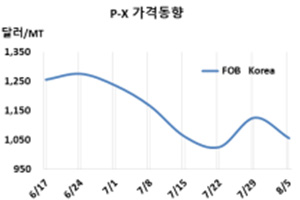표, 그래프: <P-X 가격동향> <화학저널 2022/08/11> |