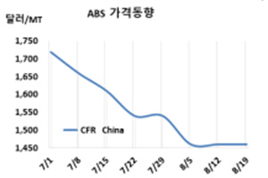 표, 그래프: <ABS 가격동향> <화학저널 2022/08/24> |