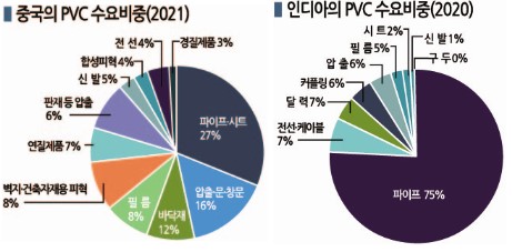 글로벌 PVC 수요는 아시아, 미국을 중심으로 계속 증가해 2022년 5000만톤을 크게 넘어설 것으로 예상됐으나 인디아가 수입을 줄이면서 2022년에도 5000만톤을 약간 상회하는 수준에 그칠 가능성이 제기되고 있다.