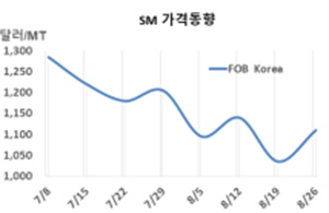 표, 그래프: <SM 가격동향> <화학저널 2022/08/31> |