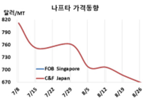 표, 그래프: <Naphtha 가격동향> <화학저널 2022/09/02> |