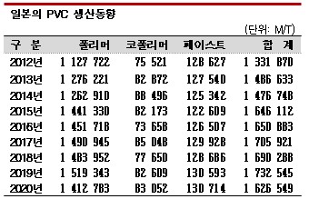 일본은 PVC(Polyvinyl Chloride) 페이스트 수요가 줄어들고 있다.