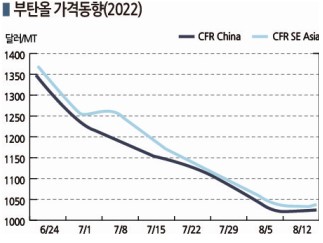 n-부탄올은 7월19일 중국 내수가격이 톤당 7815위안으로 2022년 초에 비해 15.7% 하락했으며, 2-EH는 4월 중순 1만2433위안에서 7월20일 8367위안으로 32.7% 폭락한 것으로 알려졌다.