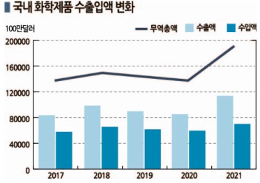 화학제품 무역액은 2021년 사상 최고치를 기록했다.