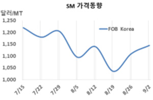 표, 그래프: <SM 가격동향> <화학저널 2022/09/07> |