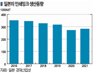 일본은 2021년 석유수지 생산량이 10만4002톤으로 전년대비 1.8% 줄어들어 4년 연속 감소세를 기록했다.