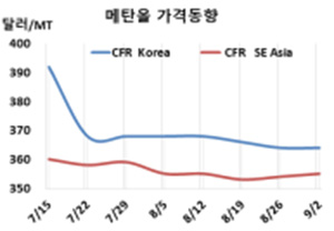 CFR Korea 368달러로 4달러 상승 … 4개 플랜트에 725만톤 달해