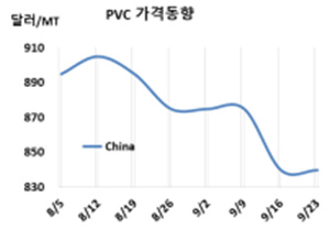 표, 그래프: <PVC 가격동향> <화학저널 2022/09/27> |