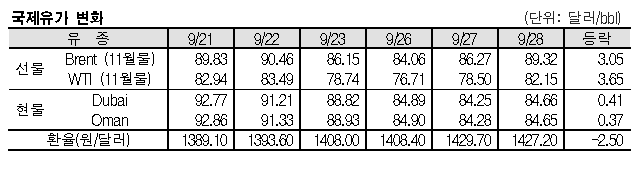[국제유가] 국제유가, 쿠르드 수출 재개 “급락” | 2025-09-30 | ||