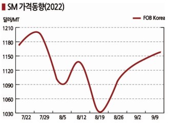 국내 SM 생산기업들이 공급을 줄임에 따라 FOB Korea가 CFR China보다 30달러 높은 수준을 계속하고 있다.