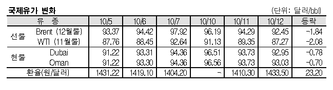 10월11일 국제유가는 OPEC(석유수출국기구)의 수요 전망치 하향 조정 영향으로 급락했다.