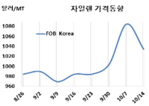 FOB Korea 1035달러로 50달러 떨어져 … 용제도 전반적 약세