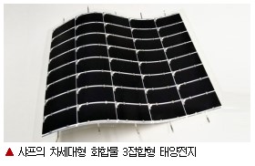 일반적으로는 유리로 태양전지를 감싸는 구조이나 샤프는 필름을 사용해 경량화 및 플렉서블(Flexibile) 적용까지 성공했다.