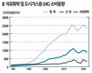 2020년 석유화학산업의 가스 소비량은 21억8120만입방미터로 국내 전체 소비량의 9.7%를 차지한 것으로 나타났다.