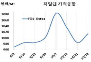 FOB Korea 1015달러로 30달러 상승 … P-X 하락세가 걸림돌