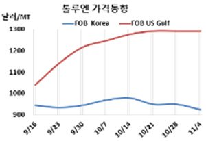 FOB Korea 925달러로 25달러 하락 … 중국도 900달러 무너져