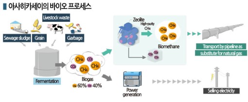 아사히카세이(Asahi Kasei)는 이산화탄소를 선택적으로 흡착할 수 있는 제올라이트(Zeolite)를 흡착 소재로 사용해 가축 분뇨, 음식 쓰레기 발효로 얻은 바이오가스를 정제하는 사업을 2027년까지 개발할 방침인 것으로 알려졌다.