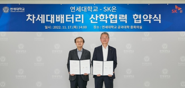 SK온(대표 지동섭)이 연세대, 한양대와 차세대 배터리 연구개발(R&D) 역량을 강화한다. <화학저널 2022/11/18> |