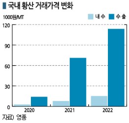 영풍 보고서에 따르면, 황산은 수출가격과 내수가격 차이가 커 수출량이 압도적으로 많은 편이다. 2021년 수출가격은 톤당 6만5000원, 내수가격은 1만3000원이었으며 2022년 상반기에는 수출가격 11만1000원, 내수가격 2만2000원으로 나타났다.