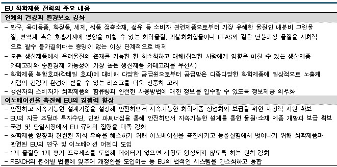 또 EU가 화학물질 규제를 통해 앞으로도 글로벌 시장의 선두자 역할을 할 것을 강조하고 있다.