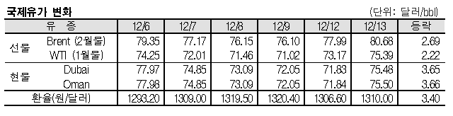 브렌트유, 80.68달러로 2.69달러 올라 … 두바이유는 75.48달러