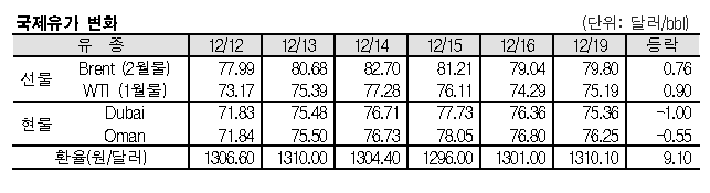 12월19일 국제유가는 중국 수요 증가 기대로 상승했다.