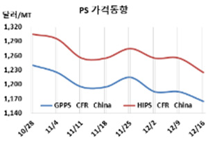 GP, CFR China 1165달러로 20달러 하락 … HIPS는 하락폭 확대