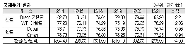 브렌트유, 82.20달러로 2.21달러 올라 … 두바이유는 76.74달러로